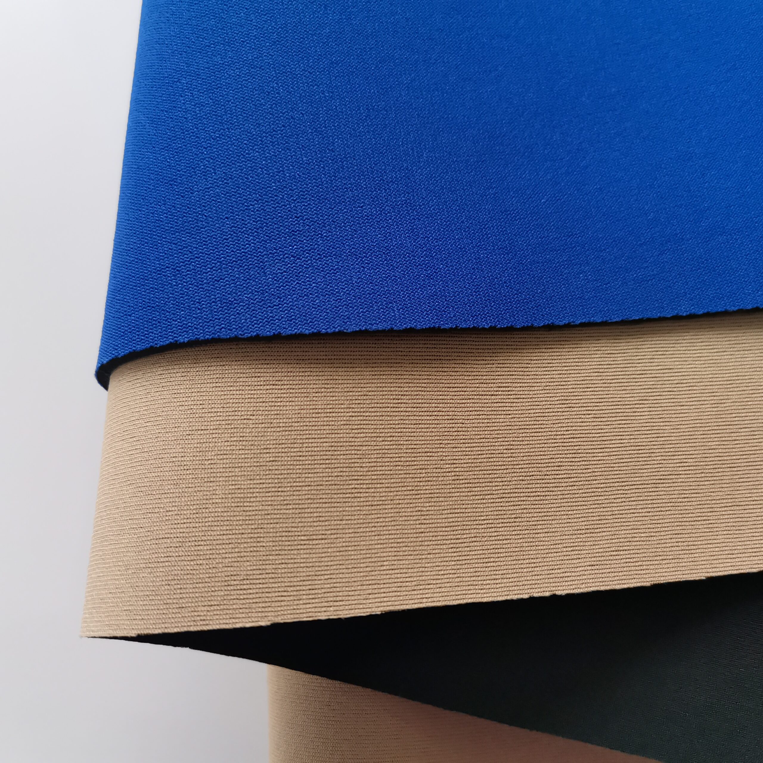 OK, mercerized fabrics,Jersey fabric, Polar fleece fabric, Strength fabric, Cotton fabric, Rib fabric, Imitate OK fabric, Velvet fabric etc…., the fabric color on neoprene can be custom made.
