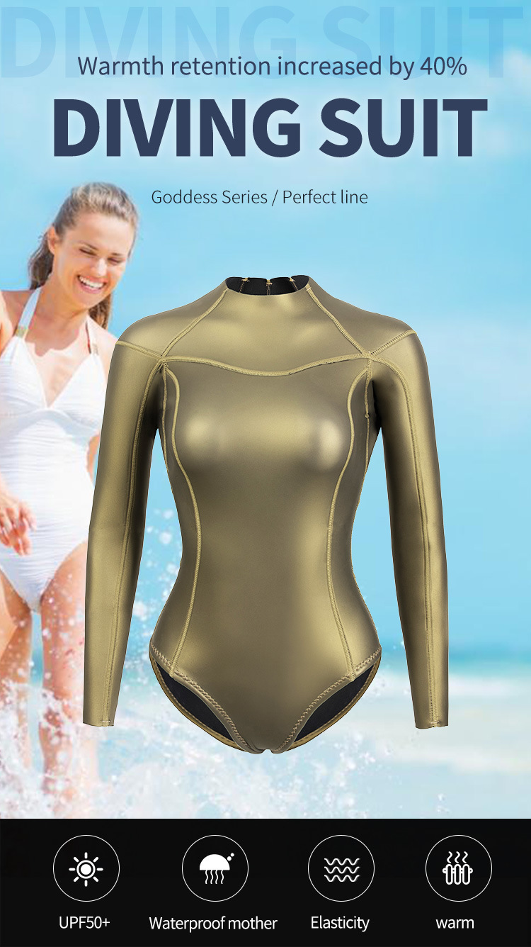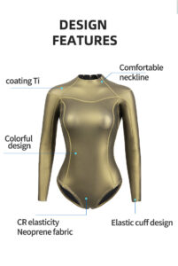 This women’s bikini wetsuit is made of high-quality, durable neoprene rubber, offering excellent elasticity and warmth.