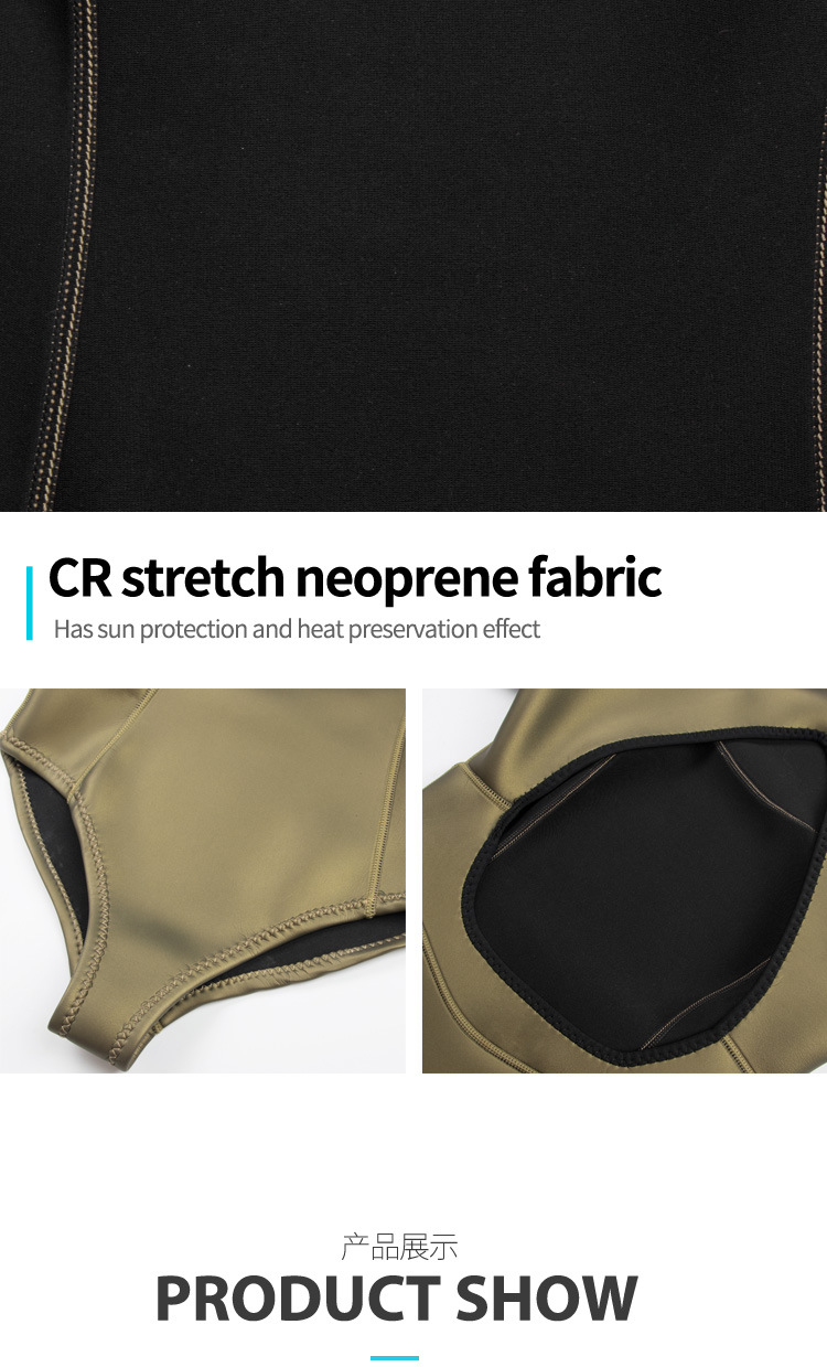 It features three layers of wetsuit fabric with a front zipper. The outer layer is made of imported nylon fabric, highly elastic and durable; the middle insulating layer is neoprene rubber, offering good elasticity, waterproofing, and warmth; soft, close-fitting, and comfortable.