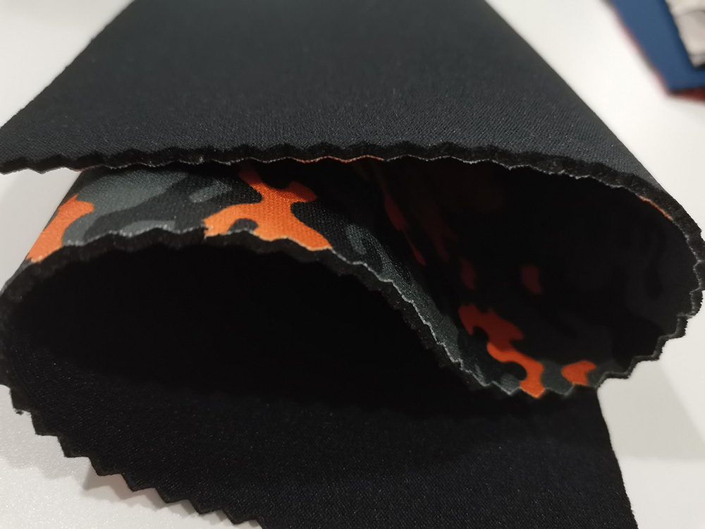 Neoprene can be laminated on one or both sides with different fabrics for a variety of products, usually nylon, polyester, lycra, OK, mercerized, knitted, polar fleece, strong, cotton, ribbed , velvet fabric, etc. Fabric color on neoprene can be customized.