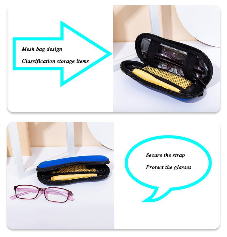 Durable Material: Made of neoprene, our portable glasses case is soft and flexible, providing enough protection to prevent glasses from being scratched or damaged when dropped.